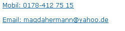 Für Gala's, Konzerte, private Veranstaltungen und insbesondere für Fluss-bzw. Seekreuzfahrten können Sie mich engagieren: als Solistin, mit Klavierbegleitung, Salon- bzw. Show-Orchester oder Band. ![]() Sollten Sie meine private Adresse benötigen, teile ich sie Ihnen gerne unter 0178/4127515 mit. IMPRESSUM Bitte beachten: Für diese Seite ist die Künstlerin selbst verantwortlich. Rückmeldungen bitte an: E-mail: magdahermann@yahoo.de Dieses Impressum gilt nur für die Domain magdahermann.de und deren Layouts. | |